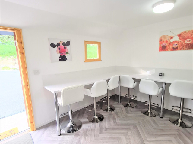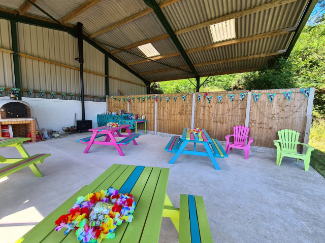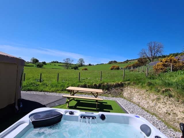 All our yurts are new and your private hot tub is yours for the duration of your stay and included in the price. Your own private centrally heated bathroom, with heated towel rail, real toilet (not compost), power shower, hand basin and hair dryer (not a hotel one, but quite a feisty hairdryer ). The Glampers kitchen has everything you have at home, your own private fridge, which will have a pint of milk ready for you. There is free tea, coffee, sugar and drinking chocolate. Items in the kitchen include, dishwasher, kettle, toaster, George Foreman Grill, micro wave, toasty maker.  Check out our pizza barn with BBQ, wood fired pizza oven and Log burner. Wood is free and ready for your use. Clwyd my husband lights the pizza oven at an agreed time with yourselves as the oven takes an hour to heat as it is wood fired. Clwyd will cook the pizza’s for you, unless you would like to cook yourself, Clwyd will be on hand to assist.  40 acres for you to roam and view the beautiful landscapes.